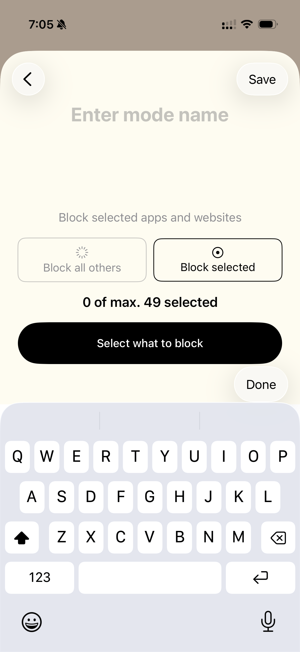 Modes are different blocking setups you create inside the Tap Out app. Each mode lets you decide which apps and websites are restricted and how strict the blocking should be. You can switch between modes anytime depending on your focus needs.