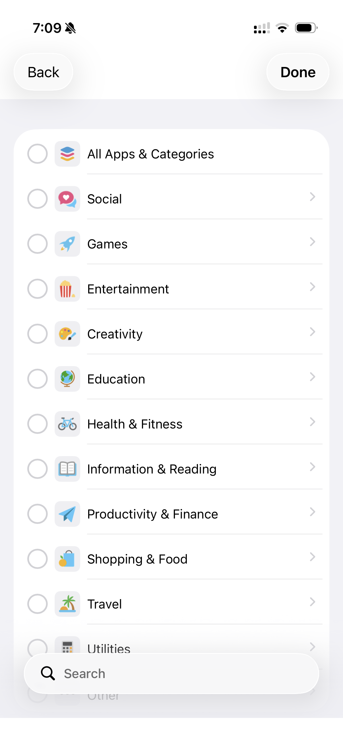 Choose between the categories